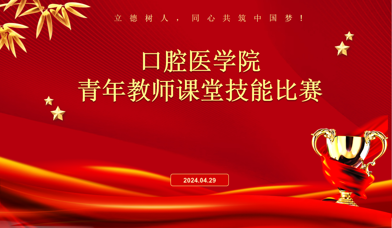 为深入学习贯彻习近平新时代中国特色社会主义思想和党的二十大精神,落实全国教育大会精神,以教育家精神为引领,进一步加强学校青年教师队伍建设,助力学校教育教学高质量发展,学院于2024年4月29日举办了以“青年教师展风采,以赛促教共成长”为主题的口腔医学院青年教师大赛。