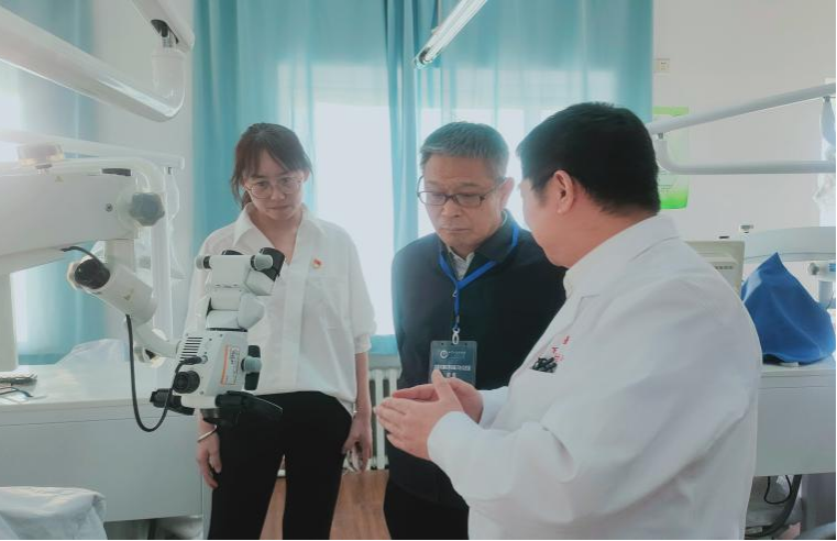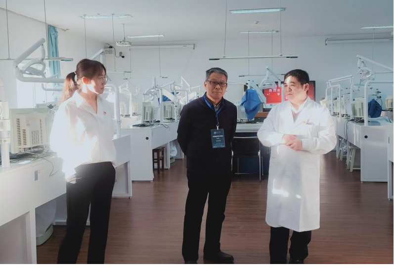 张吉维教授在参观完口腔医学院技能中心、技工中心以及办公室和教学场地后,与口腔医学院常务副院长金武龙同志,副院长李琦同志进行了深入谈话。张吉维教授就口腔医学院近年本科生招生就业情况,技能中心基本设置使用情况及学院课程思政建设情况等进行调研,常务副院长金武龙同志进行解答。同时张吉维教授对学院教职员工基本情况及技工中心情况等进行调研,李琦副院长进行解答。
