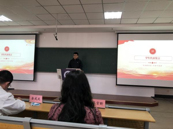 学生代表任恩廷围绕“青春践行二十大”这一主题展开发言。