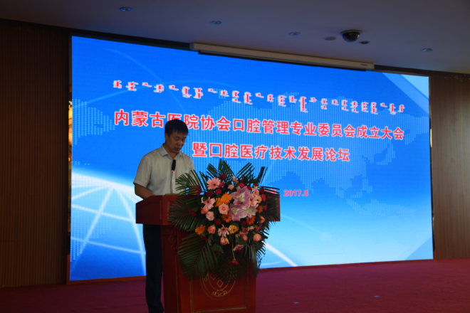 内蒙古医科大学附属医院赵建民副院长在会上致辞,表示此次会议由内蒙古医院协会主办,由内蒙古医科大学口腔医学院、内蒙古医科大学附属医院协办,是对内蒙古医科大学口腔工作的鼓励和鞭策,更是对全区口腔工作的推动和促进。
