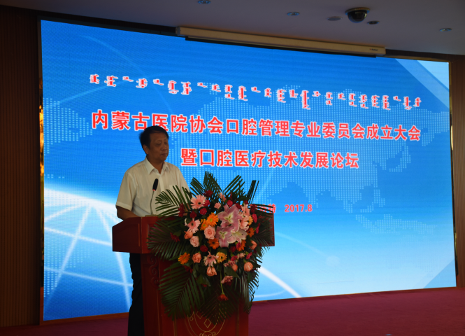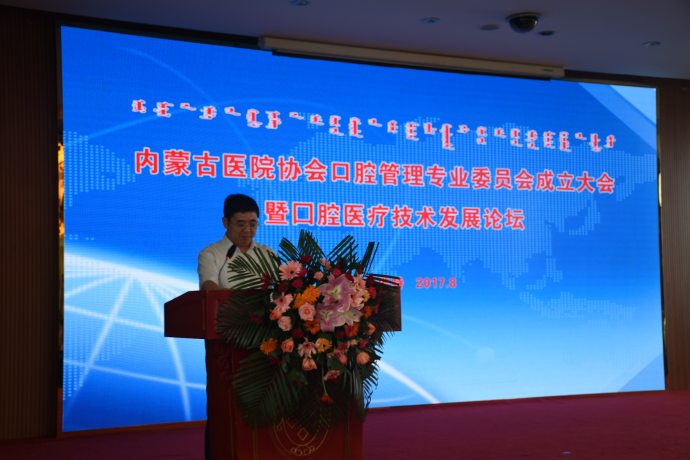 2017年8月14日内蒙古医院协会口腔管理专业委员会成立大会暨口腔医疗技术发展论坛在内蒙古呼和浩特市隆重召开。来自全区12个盟市150余名专委会委员参加了本次大会,此次大会由内蒙古医院协会主办,内蒙古医科大学口腔医学院、内蒙古医科大学附属医院口腔科协办。出席大会的领导有内蒙古自治区卫生计生委副主任、党组成员、内蒙古医院协会尹赤林会长,内蒙古医院协会冯仙桃副秘书长,内蒙古医院协会乔静副秘书长,内蒙古医科大学附属医院赵建民副院长等。口腔医疗技术发展论坛邀请上海交通大学第九人民医院的国内知名专家围绕口腔颌面外科、正颌外科、正畸、种植方面进行讲座和交流。