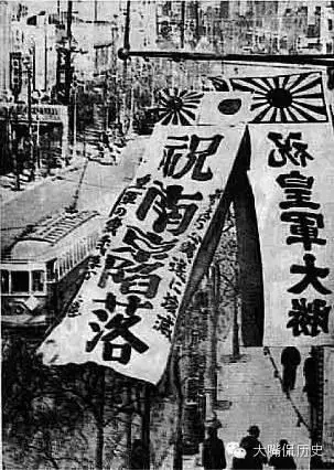 ↑↑↑旗子上写着“祝南京陷落”,“祝皇军大胜”