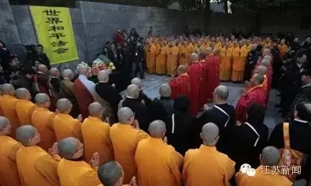 在侵华日军南京大屠杀遇难同胞纪念馆的遇难者名单墙前举行“世界和平法会”,中日韩僧侣、两岸三地佛教界和南京市宗教界人士及信众代表参加。